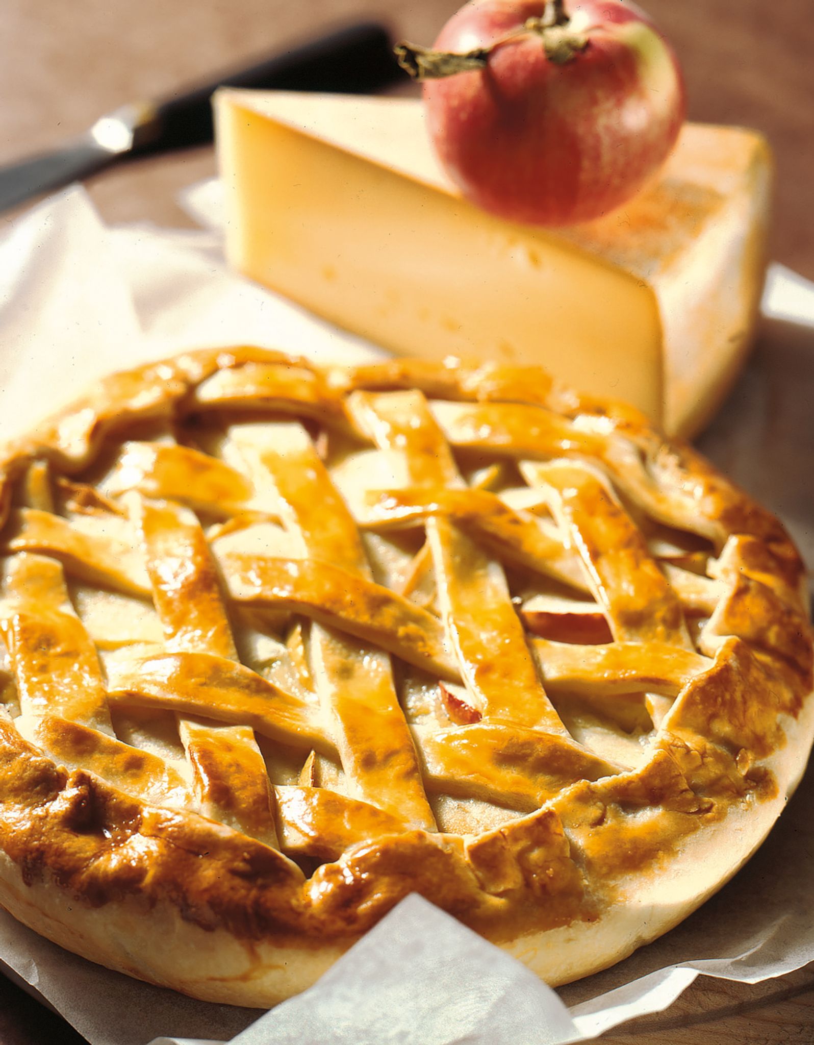 - Das Ei und die Schlagsahne verrühren, würzen und über die Füllung gießen. Das restliche Drittel Teig wieder 3 Millimeter dick ausrollen, in Streifen schneiden, gitterartig über den Kuchen legen und mit etwas Wasser aneinanderkleben.