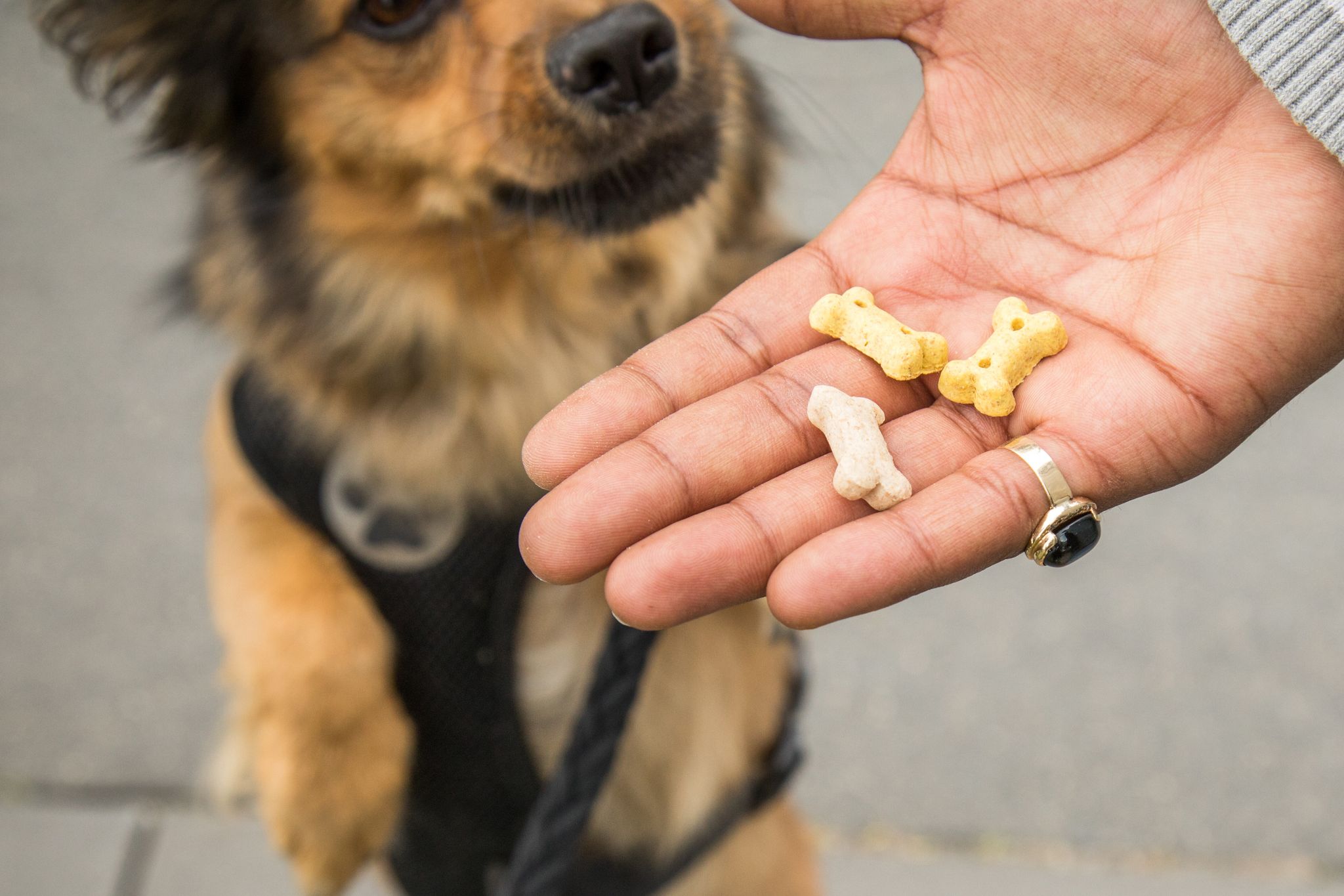 Wer seinem Hund gern zusätzlich Snacks anbietet, sollte das Hauptfutter reduzieren – denn auch Leckerlis liefern häufig eine ordentliche Portion Kalorien. Dabei kann es helfen, die Fütterungsempfehlungen auf der Verpackung zu beachten.