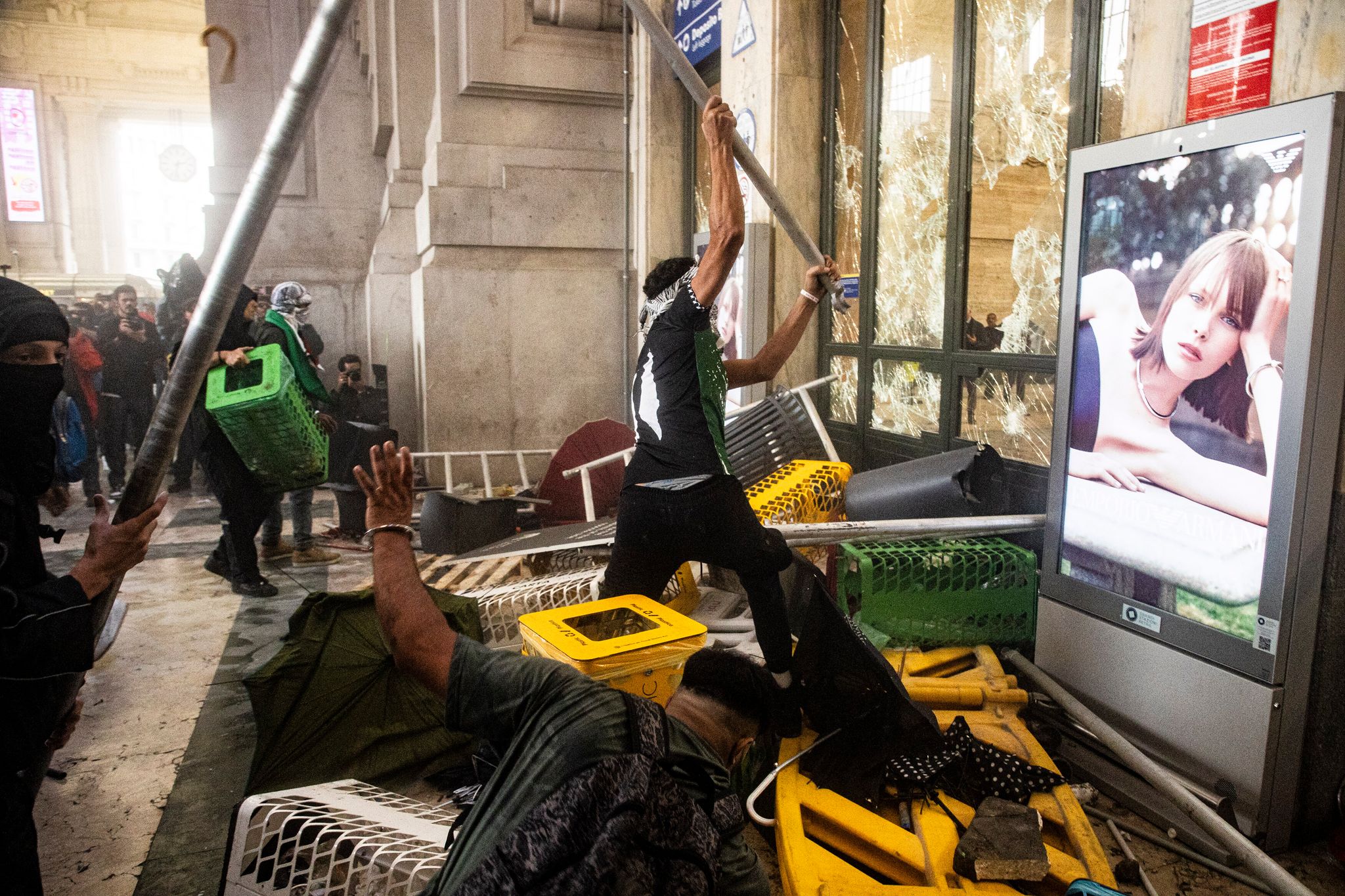 Nach Berichten von Augenzeugen versuchte dann eine Gruppe von jüngeren Männern, mit Gewalt in den Hauptbahnhof von Mailand einzudringen. Viele waren schwarz gekleidet, einige vermummt. Aus der Menge flogen Flaschen und Steine. Die Polizei setzte Schlagstöcke und Tränengas ein. Am Eingang des Bahnhofs gingen Scheiben zu Bruch. Die Polizei konnte den Angriff schließlich jedoch abwehren. Das genaue Ausmaß der Schäden stand zunächst nicht fest.