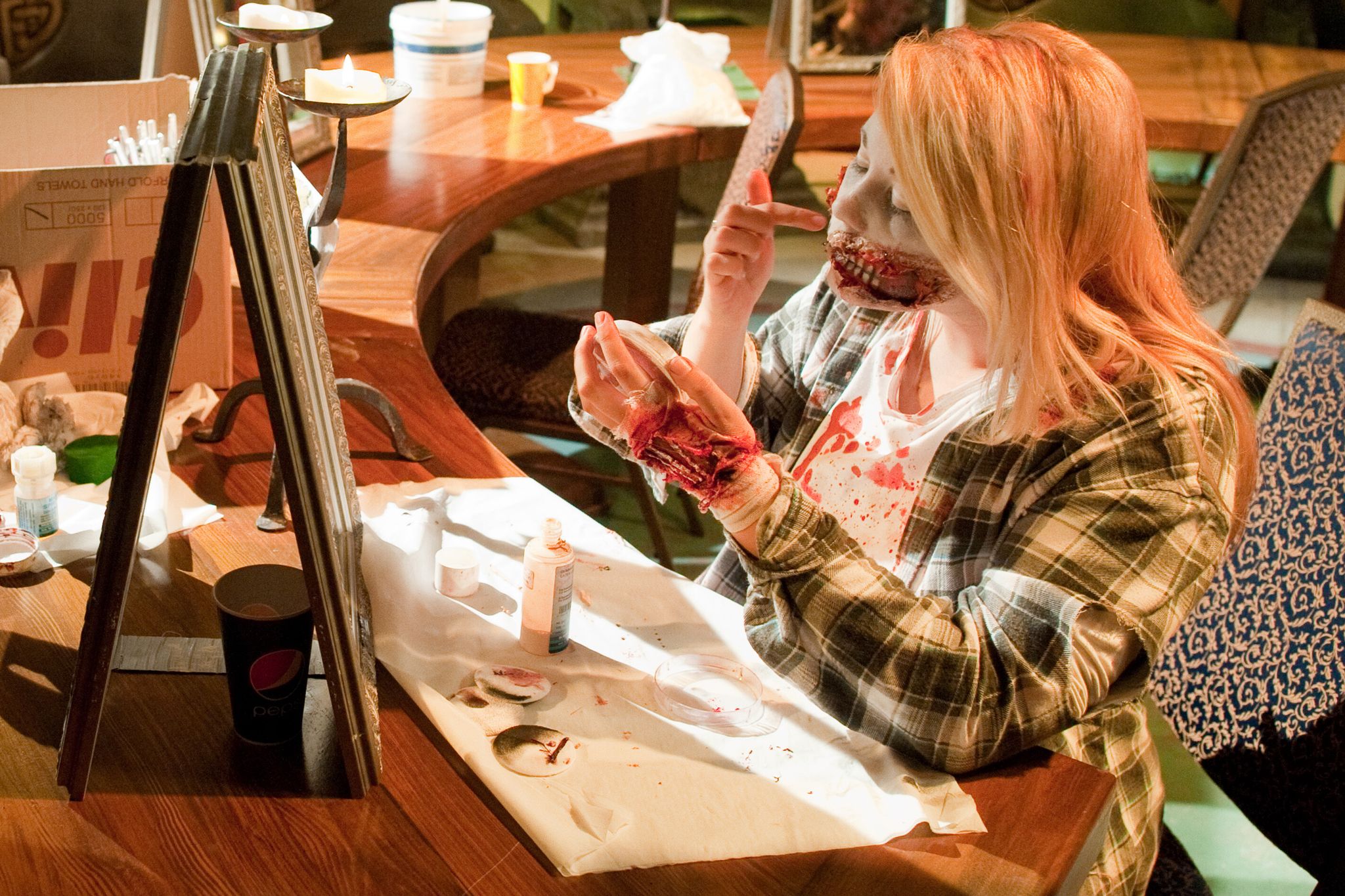Tipp: Mit kleinen Schwämmen oder den Fingern lassen sich Übergänge gut verblenden. Rote Kontaktlinsen sorgen für einen dramatischen Effekt, sollten aber nur von geprüften Herstellern kommen und hygienisch eingesetzt werden.
