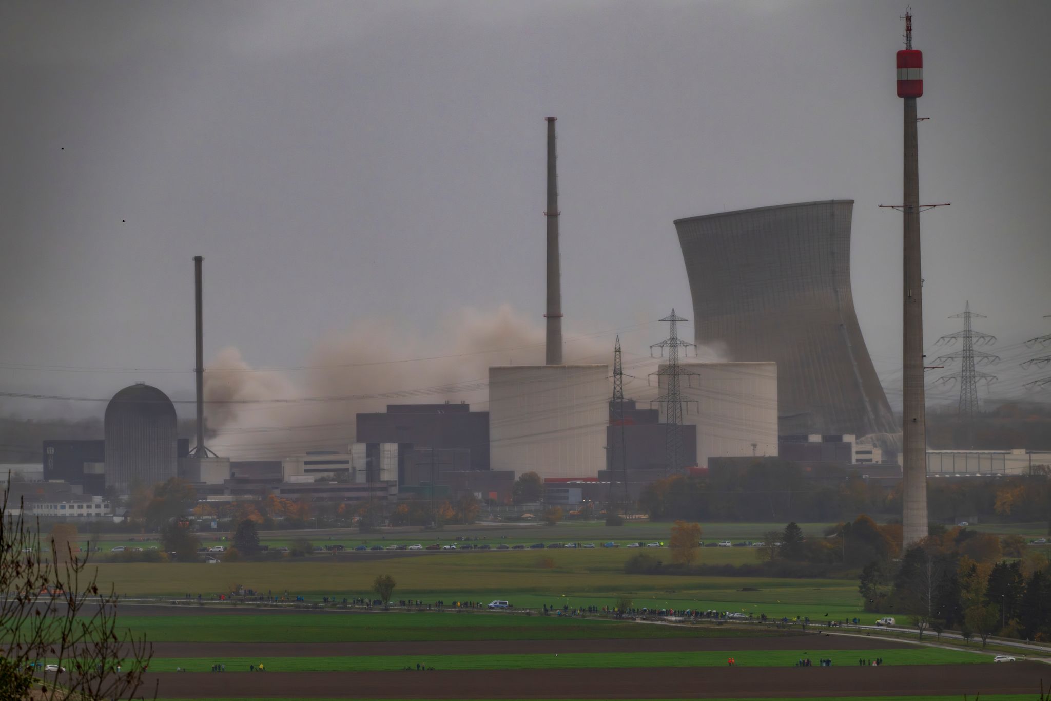 Tausende Schaulustige insbesondere aus Bayern und dem nahen Baden-Württemberg verfolgten die spektakuläre Zerstörung eines Symbols des Atomzeitalters.