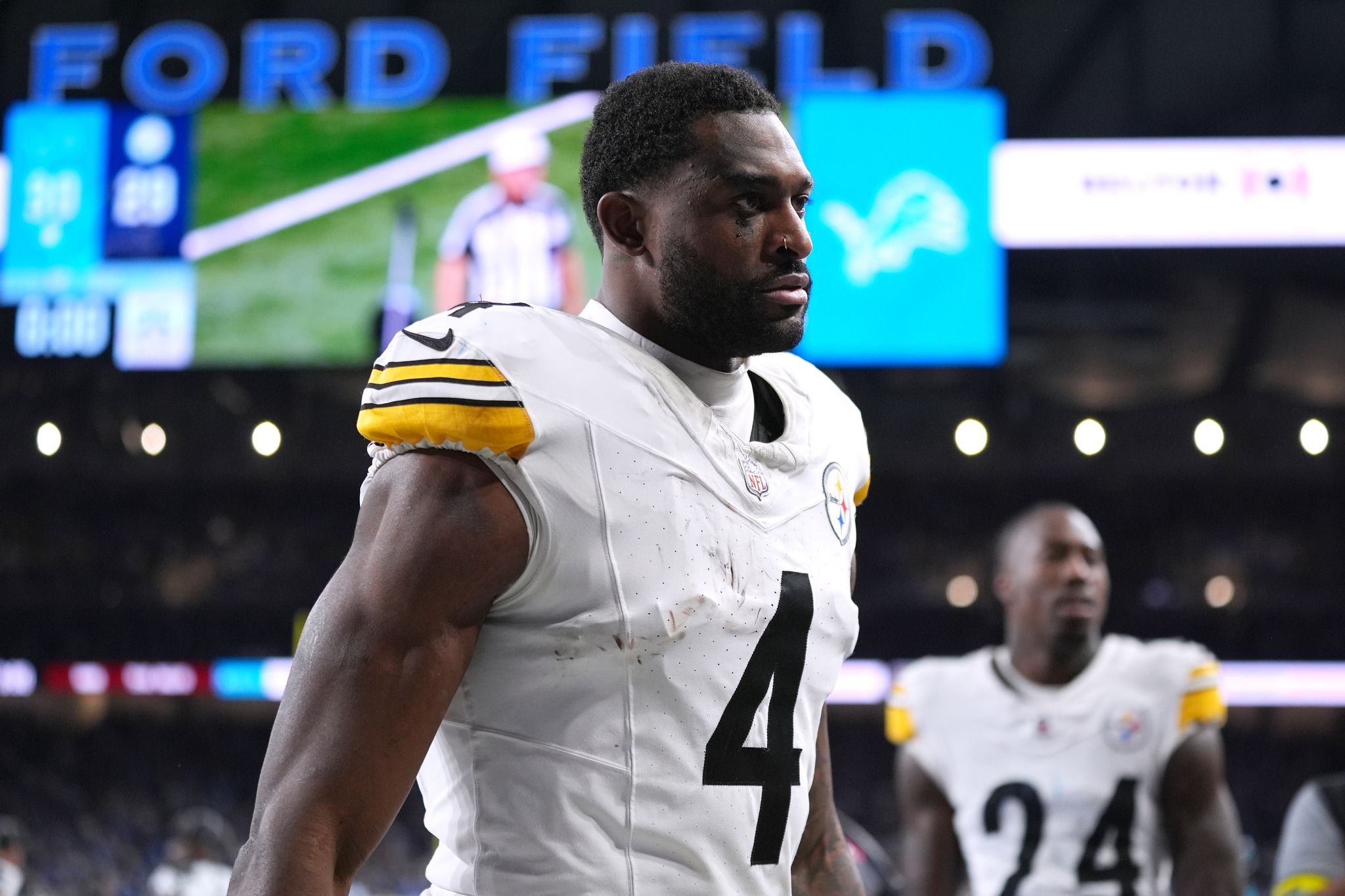Die Pittsburgh Steelers haben durch ein 29:24-Sieg über die Detroit Lions ihre Playoff-Chancen in der NFL verbessert, negativ fiel jedoch Pittsburghs Passempfänger DK Metcalf am Rande des Feldes auf. Während des zweiten Viertels wurde Metcalf gegen einen gegnerischen Fan handgreiflich. Videoaufnahmen zeigen, wie der Steelers-Akteur mit einem Zuschauer mit blauer Perücke am Tribünenrand spricht, ehe er mit seiner rechten Hand in Richtung Gesicht des Fans schlägt.